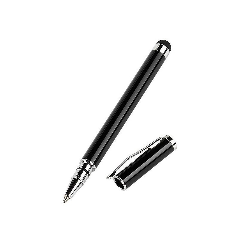 2 in 1 functionality combining a stylus, as well as conventional ball point pen with removable cap. Full size stylus features a lightweight aluminium body with a convenient built-in shirt clip. The soft touch rubber tip glides smoothly over the screen.